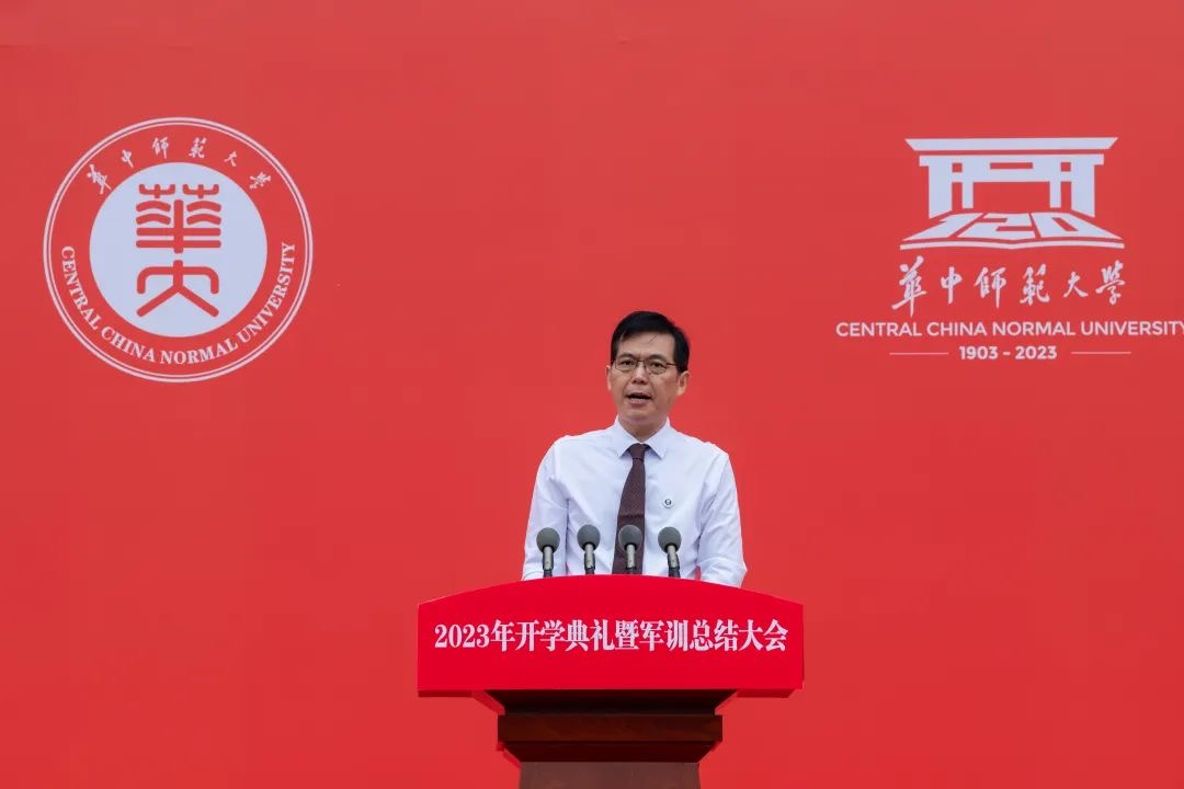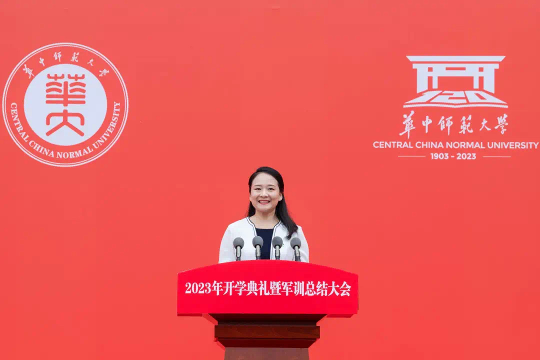 校长郝芳华代表全校师生员工向全体2023级新生表示热烈欢迎。在题为《以教育家精神涵养成才之路》的讲话中,郝芳华回顾了华师120年“振兴师范教育、培育祖国栋梁”的发展历程,将华师学子成长发展的奋进方向与习近平总书记提到的“大力弘扬教育家精神”紧密结合,叮嘱同学们“始终牢记习近平总书记的重要嘱托,以教育家精神为炬,用教育家精神涵养成才之路”。