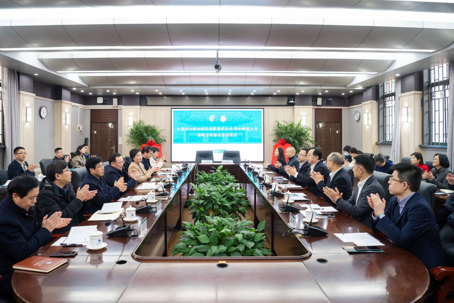 华大在线讯(记者 黄妍妍)为推进校企融合,共商战略合作,12月20日,我校与中国东方航空武汉有限责任公司战略合作协议签约仪式在行政楼一楼会议室举行。中国东方航空武汉有限责任公司董事长、党委书记柴舸,总经理、党委副书记李恒虎,副总经理杨志勇,党委副书记、工会主席李良斌,校党委书记夏立新、校长郝芳华、副校长彭双阶等出席。签约仪式由校党委副书记陈迪明主持。